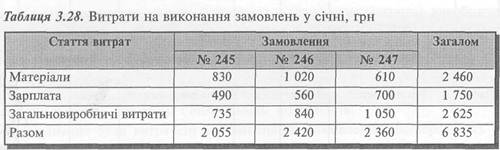Підприємство виконувало в січні три замовлення, незавершеного виробництва на початок місяця не було. Витрати на виконання замовлень наведено в табл. 3.28.