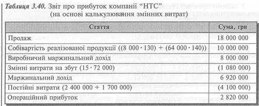 Система калькулювання змінних витрат надає інформацію, необхідну для прийняття поточних рішень щодо оптимізації виробничої програми; ціноутворення; придбання чи виробляння комплектуючих виробів; розширення або скорочення виробництва певної продукції тощо. Для ілюстрації можливостей системи калькулювання змінних витрат розглянемо приклад.