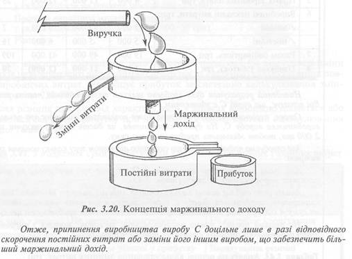 Але слід брати до уваги, що хоча виріб Сіє збитковим, він робить свій внесок у покриття постійних витрат підприємства. Це випливає з концепціїмаржинального доходу, яку дуже вдало проілюстрували Р.Ентоні та Дж.Ріс* (рис. 3.20).