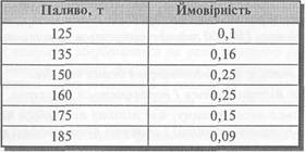 ВПРАВА 5.15 Енергетична компанія використовує моделі, грунтовані на прогнозуванні погоди, для оцінки ймовірності використання палива для виробництва електроенергії. Нижче наведено останню оцінку ймовірності використання палива: Необхідно: скориставшись наведеними даними, обчислити кількість палива, що буде використано, та стандартне відхилення від очікуваної величини.