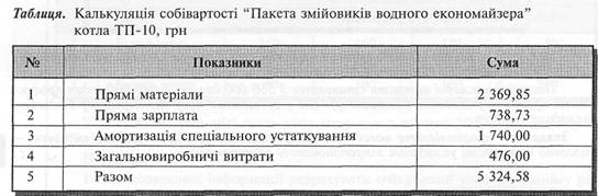 Спеціалізований цех з ремонту котельного обладнання (СЦРКО) виготовляє "Пакети змійовиків водного економайзера котла ТП-10" для Добротвірської ТЕС. Потреба становить 32 пакети, а розрахунок собівартості цього виробу наведено в таблиці.