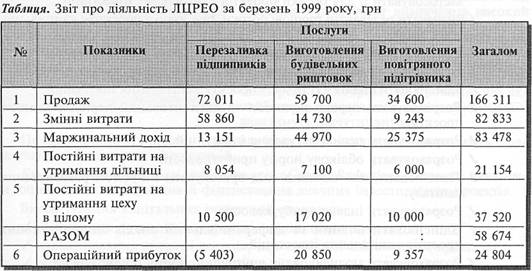 Наведений звіт свідчить, що послуга "перезаливка підшипників" є збитковою. Чи варто й далі надавати цю послугу?