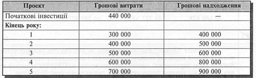 Необхідно: 1) розрахувати чисту теперішню вартість наведених грошових потоків, використовуючи ставку дисконту 14%; 2) визначити, чи перевищує внутрішня норма прибутковості 14%. ВПРАВА 6,2 _______________________________________________________________________________ Компанія "Арт" розглядає три проекти капітальних інвестицій в устаткування, для кожного з яких потрібні інвестиції у сумі 94 500 грн. Кожен з проектів розрахований на 3 роки і забезпечує такі грошові надходження, грн: