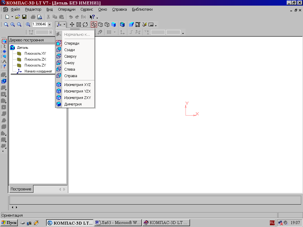 Положення моделі щодо спостерігача називається орієнтацією моделі. На панелі Вид (рис.9.5)розташована кнопка послуги Орієнтація