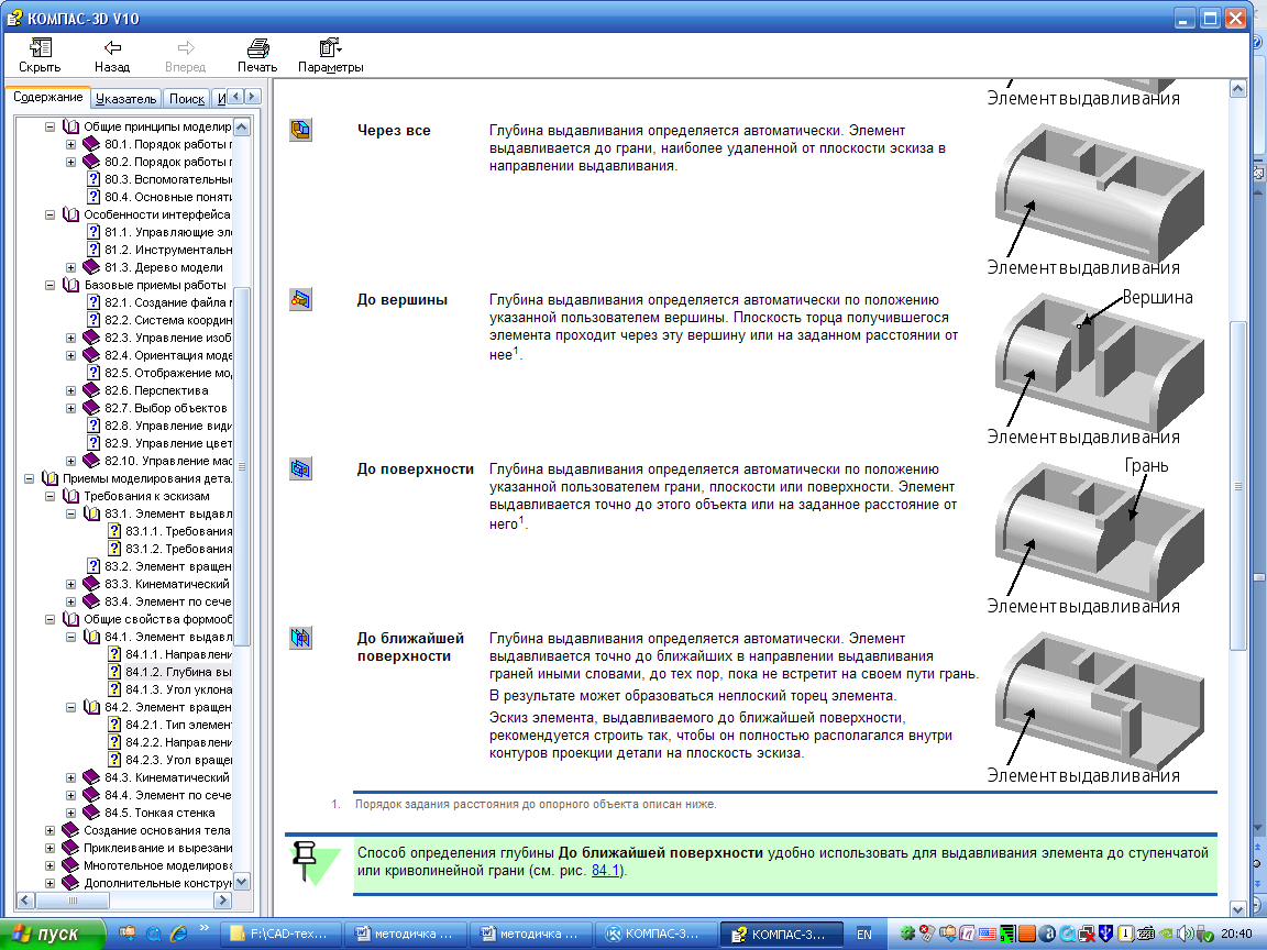 Спосіб визначення глибини До найближчої поверхні зручно використовувати для видавлювання елемента до ступінчастої або криволінійної грані (рис.10.2)