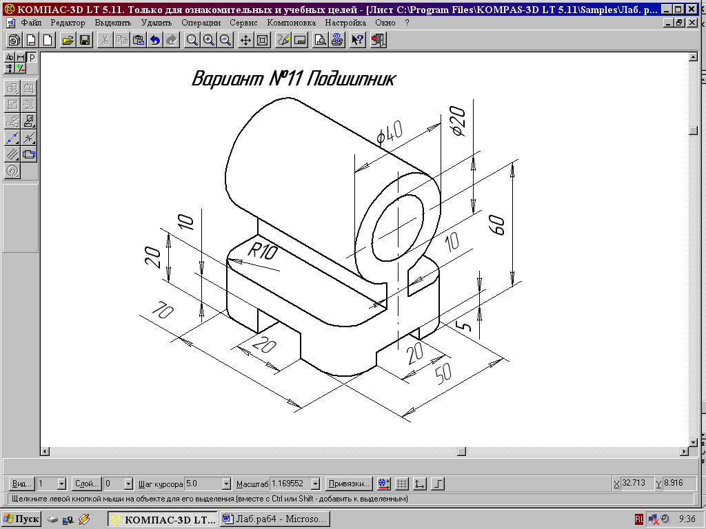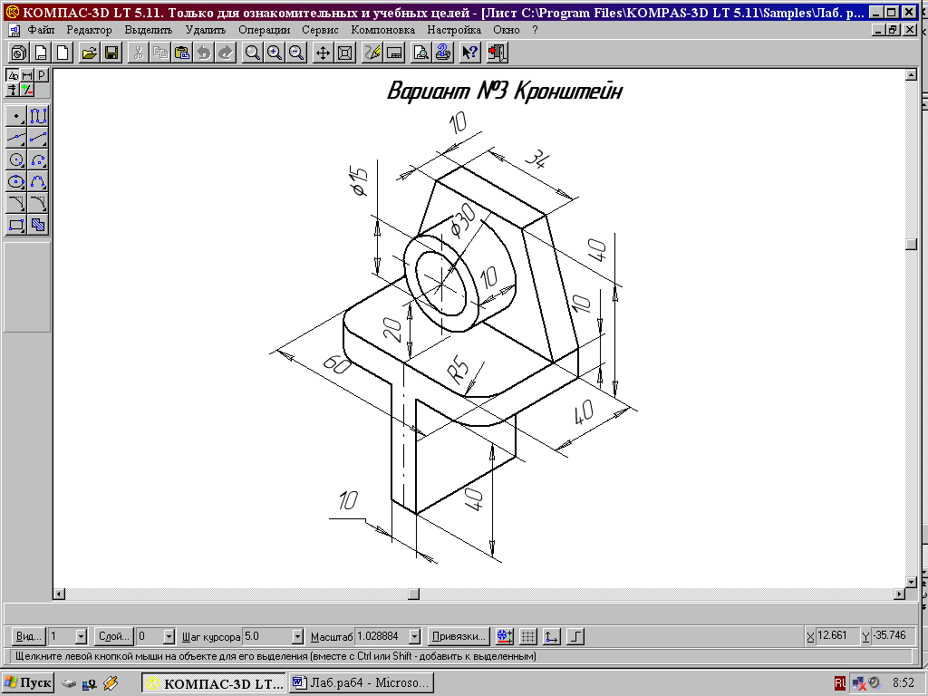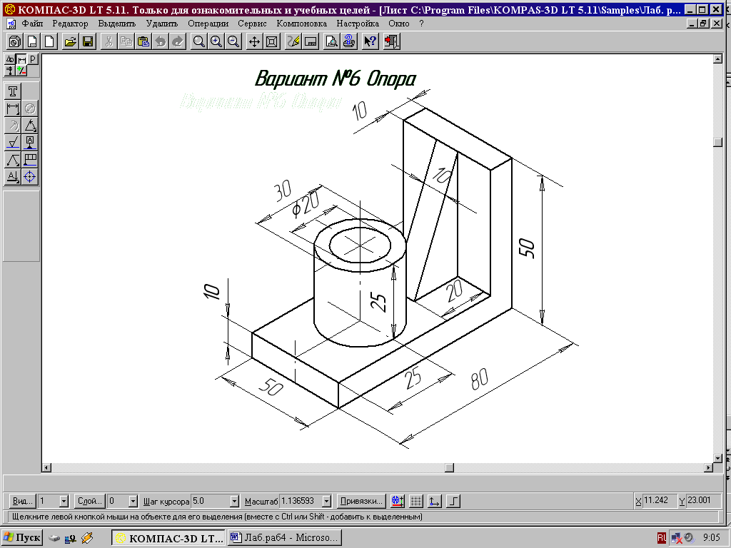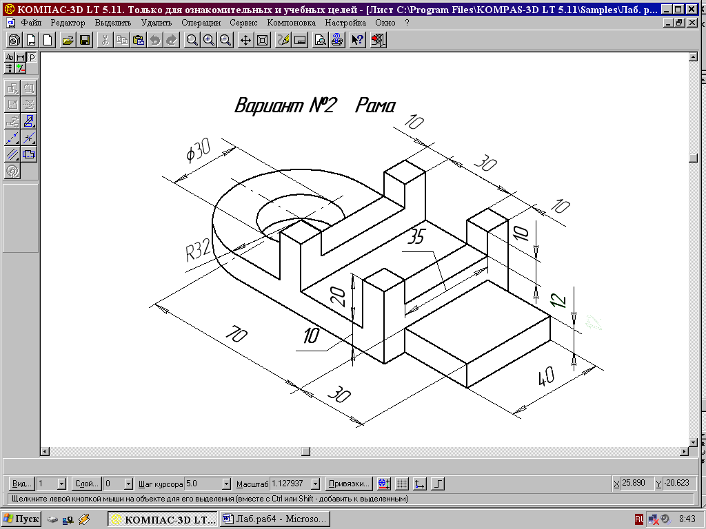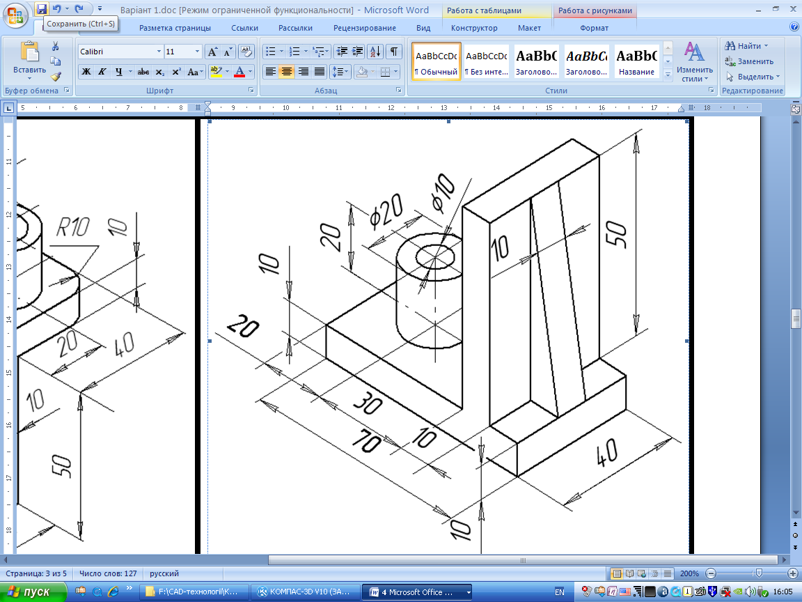 1. Побудувати модель деталі по номеру варіанту, заданому викладачем.