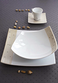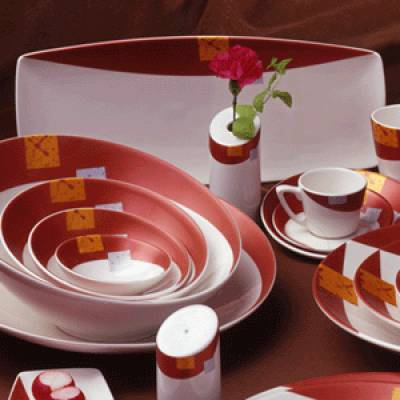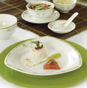У закладах ресторанного господарства класів "люкс", "вищий", "перший" посуд використовується з монограмою, емблемою, абревіатурою закладу. Посуд для етнічних ресторанів, з національною кухнею оформлюють національним орнаментом. Для китайських, японських ресторанів використовують або національний посуд (див.рис.6.5.), або європейський посуд, виконаний у стилізованих серіях. Для рибних ресторанів використовуються серії посуду з морськими мотивами. Існує мода на посуд. На початку третього тисячоліття в моді у ресторанному господарстві з'явився змішаний дизайн або "мікс-серії", спеціальний дизайн. Дизайнери експериментують як з кольором, так і з формою блюд. Серія посуду для "шведського столу" "FUNction" відрізняється надзвичайною оригінальністю форм та яскравістю барв. У ній представлені надзвичайно великі за розміром миски та хвилеподібні блюда для подавання страв. Європейські серії посуду насамперед відрізняються розмірами і формами складових частин сервізів: пропонуються тарілки овальної, прямокутної, шестикутної, квадратної, трикутної форм, з гладкими та фестончастими краями, дворівневі, з відділеннями для основного продукту та гарніру чи соусу тощо (див рис.6.5.).