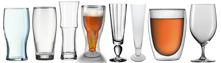 З) Бокали для коктейлів Ж) Бокали для пива Е) Склянки хайбол та граніті