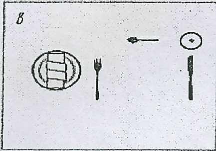 Рис.7. 9.Варіанти мінімальної сервіровки на обід: а) пиріжкова тарілка, столові прибори, фужер для води, серветка; б) закусочна тарілка, пиріжкова тарілка, столові прибори, фужер для води, серветка.