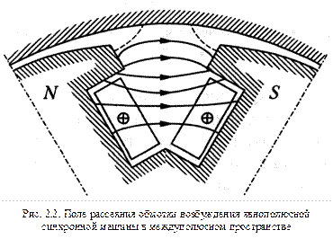 Кроме поля в воздушном зазоре обмотка возбуждения создает поток рассеяния в междуполюсном пространстве Потокам