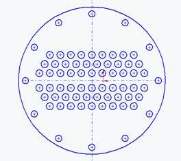 збірка (часткова) трубної системи Вихідні дані: для трубних решіток: 1) кількість отворів = 30+ 2*N 2) діаметр трубних решіток визначається після компоновки масиву отворів 3) для вказівки напряму копіювання при збірці використовувати кромку канавки. Для трубки: У трубній системі може застосовуватися два види трубок – прямолінійна і U-образна.