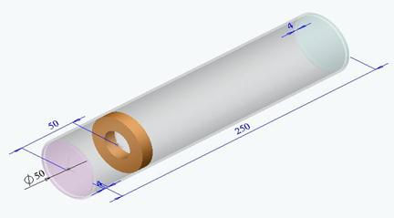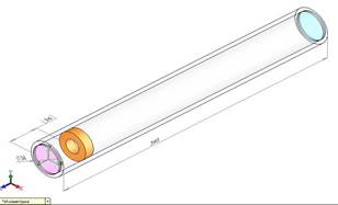 2.1 Моделювання процесу руху та нагріву рідини в трубі Для рішення цього завдання створюємо дві тривимірні моделі пристроїв для проведення двох експериментів: Експеримент1: моделювання руху і нагріву рідини (вода) у трубі (рис. 1); Експеримент2: моделювання руху і нагріву води в трубі з діафрагмою (рис. 2).