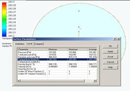 Рис.6 Розподіл температури Рис.7 Визначаємо середню температуру розподілу. наприкінці труби (на площині пробки) температури на Рис.6 (команда Surface (Surface Plot). Parameters)
