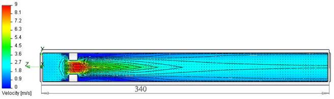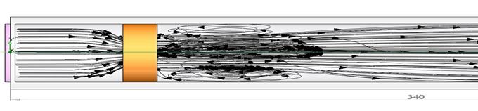 Рис.3 Модель труби з діафрагмою Рис.4 Потік у трубі (лінії струму)