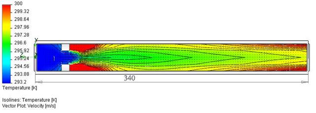Рис 12 Вимірюємо середню температуру наприкінці труби.Т=299.7 К.
