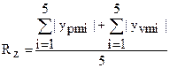где |yi| – величина отклонения i-той точки профиля от средней линии; n – число выбранных точек профиля на базовой длине ℓ. Высота неровностей профиля по десяти точкам Rz – среднее абсолютных значений высот пяти наибольших выступов профиля и глубин пяти наибольших впадин профиля в пределах базовой длины