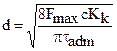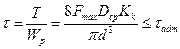 где T = (Fmax ´ Dср) / 2 – крутящий момент; Fmax – максимальная нагрузка на пружину; Wp = pd3 / 16–полярный момент сопротивления поперечного сечения витка; Из уравнения (10.6) диаметр проволоки пружины равен