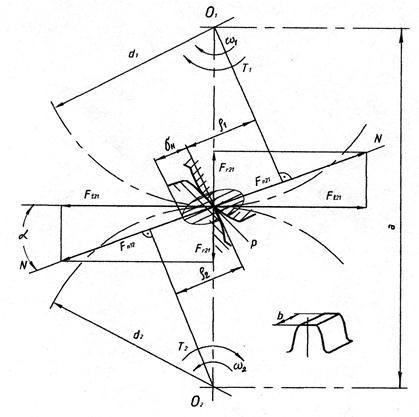 Рис. 14.17 Надежность зубчатых передач зависит не только от точности колес и передач, жесткости валов и условий смазки, но также от прочности и износостойкости (твердости) зубьев. Эти параметры зубчатых передач можно определить путем соответствующих расчетов на прочность. В ГОСТ 21354-87 предусматриваются расчеты на контактную усталость активных поверхностей зубьев и на сопротивление усталости зубьев при изгибе. Обычно закрытые зубчатые передачи рассчитывают на сопротивление усталости при контактных напряжениях с последующей проверкой на прочность при изгибе, а открытые зубчатые передачи – на сопротивление усталости при деформации изгиба.