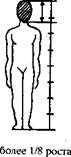 При наблюдении в профиль указывается контур и положение затылка, (округлый, угловатый, плоский, выступающий сильно или слабо). Положение затылка относительно вертикали: скошенный, вертикальный, выступающий. Скошенный – линия контура затылка не достигает вертикали. Вертикальный – линия контура затылка примерно совпадает с вертикалью. Выступающий – линия контура затылка пересекает вертикаль.