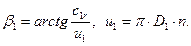 Тоді враховуючи зміщення потоку, кут установки лопаті на вході