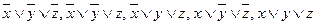 Для получения СКНФ среди значений функции из таблицы истинности выбирают нулевые (функция не должна быть тождественно-истинной) и соответствующие им переменные соединяют в элементарные дизъюнкции, причем, если переменная имеет 0 значение, то она берется без отрицания, если – 1 -- с отрицанием. Далее элементарные дизъюнкции соединяются знаками конъюнкции, и получается СКНФ. Пример: Используя таблицу истинности предыдущего примера, составить СКНФ. Функция принимает 0-значения при следующих комбинациях значений переменных: 111, 110, 100, 011, 000. Этим комбинациям соответствуют следующие элементарные дизъюнкции: Задачи. 1. Построить СДНФ и СКНФ для функции, таблица истинности которой имеет следующий вид: