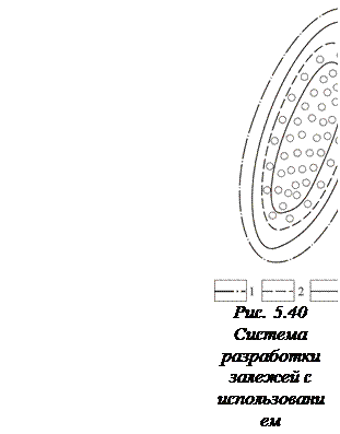 Система разработки нефтяной залежи с использованием напора подошвенных вод. Систему применяют для нефтяных залежей массивного типа (обычно на всей или почти на всей площади такие залежи подстилаются водой), которые обладают водонапорным или активным упруговодонапорным режимом. При разработке таких залежей вытеснение нефти водой сопровождается повсеместным подъемом ВНК, т. е. последовательно обводняются интервалы залежи, расположенные примерно на одних гипсометрических отметках; объем залежи уменьшается (рис. 5.41). Размещение скважин на площади залежи и подход к перфорации продуктивной части разреза зависят от высоты и других параметров залежи. При высоте залежи, измеряемой десятками метров, скважины располагают равномерно и пласт в них перфорируют от кровли до некоторой условно принятой границы, отстоящей от ВНК на несколько метров. При высоте залежи, составляющей 200 -300 м и более (что свойственно некоторым массивным залежам в карбонатных коллекторах), предпочтительнее располагать скважины по сетке, сгущающейся к центру залежи, выдерживая принцип равенства запасов нефти, приходящихся на одну скважину. При этом подход к вскрытию продуктивной части разреза в скважинах зависит от фильтрационной характеристики залежи.