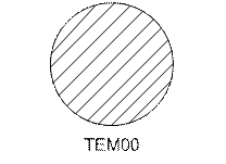 На практике, как правило, стараются обеспечить условия резонанса при l=m=0, т.е. получают продольную моду. Моды оптического резонатора и соответственно модовый состав излучения обозначают TEM n,l,m, где TEM – transverse electric and magnetic; n,l,m – модовые числа. Так как n>>m и l (например, для СО2 – лазера L=102 см - n=2*105) обычно n – не указывают. Пример: TEM00 – продольная мода, TEM01, TEM02, TEM11 и т. д. – различные типы поперечных мод. Типичные картины распределения интенсивности в лазерном пучке при генерации на различных модах приведены в литературе и рис..
