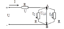 Поделив почленно мощности отдельных приёмников, получим: P1: P2: P3 = G1: G2: G3, т.е. развиваемая в отдельных приёмниках мощность пропорциональна их проводимостям (или обратно пропорциональна их сопротивлениям). При параллельном включении приёмников режим работы каждого из них не влияет на режим работы остальных. Смешанное соединение приёмников представляет собой цепь, которая состоит из ряда последовательно и параллельно соединённых приёмников (рис. 2.1, в). Для расчёта таких цепей выделяют отдельные участки с последовательным или параллельным соединением приёмников и к ним применяют выше рассмотренные соотношения. Для схемы на рис. 2.1.в, эквивалентное сопротивление находится следующим образом. Сначала определяется эквивалентное сопротивление параллельной цепи. Т.к. Сопротивление R1, включено последовательно с сопротивлением R2, поэтому эквивалентное сопротивление всей цепи равно RЭ = R1 + R2. Ток в неразветвлённой части цепи