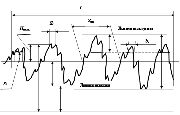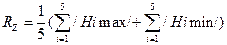 2. Высота неровности профиля по 10 точкам Rz - сумма среднеарифметических абсолютных отклонений высот пяти наибольших выступов Himax и глубин пяти наибольших впадин Himin в пределах базовой длины от средней линии m.