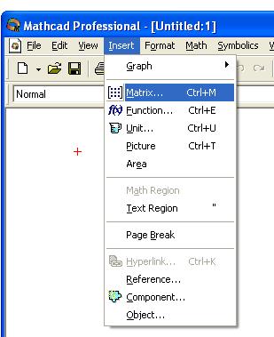 Рис. 7.2. Вызов диалогового окна «Insert Matrix» для создания матрицы с помощью команды «Matrix»