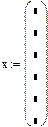 Рис. 7.1. Формирование вектора с использованием Вариант b Формирование вектора х будем производить с помощью команды Matrix. Для этого сначала напишем оператор присваивания: «х:=», а затем выполним команду Matrix. Эта команда открывает диалоговое окно «Insert Matrix», которое представлено на рис. 7.2, в котором необходимо указать число строк и число столбцов. В нашем примере число строк равно 6, а число столбцов равно 1. После нажатия кнопки «Ok» команда предоставит шаблон с шестью ячейками, в которые следует вписать значения элементов вектора.