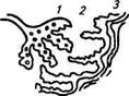 Рис. 1.3. Схема строения синапса: / — окончание аксона с пузырьками медиатора; 2 — синапти- ческая щель; 3 — часть мембраны клетки, на которую переходит возбуждение Синапс состоит из трех элементов: пресинаптической мембраны (часть нервного окончания), постсинаптической мембраны (часть мембраны другой клетки) и синаптической щели (пространство между пре- и постсинаптической мембранами). Передача возбуждения с нерва на орган (клетку) заключается в том, что под влиянием нервного импульса из пресинаптической мембраны выделяется медиатор, который является химическим раздражителем для постсинаптической мембраны. В результате в ней возникает возбуждение, распространяющееся по всей клетке. Самыми распространенными медиаторами являются ацетилхолин, норад-реналин, адреналин и др. Помимо медиаторов нейроны головного мозга вырабатывают гормоны — нейропептиды. Таковы, например, гормоны гипоталамуса. Их называют рилизинг-факторами. Эти гормоны стимулируют или угнетают образование гормонов в передней доле гипофиза, которые, в свою очередь, регулируют деятельность других желез внутренней секреции. Некоторые гормоны гипоталамуса поступают в заднюю долю гипофиза уже в «готовом виде», а затем уже из гипофиза в кровь. Таким образом, единство нервной и гуморальной регуляции осуществляется на уровне не только нервных окончаний, но и на более высоком уровне — гипоталамо-гипофизарной системы. Регуляция всех жизненных процессов осуществляется единой нейрогумораль-ной системой, в которой ведущее значение играет центральная нервная система и ее высший отдел — кора больших полушарий. На более простых уровнях организации живой материи — молекулярном, внутриклеточном, тканевом — большую роль играет химическая регуляция. Чем сложнее биологическая система, тем большее значение приобретает нервная регуляция, которая объединяет органы и ткани в различные системы, осуществляя функционирование организма во внешней среде как единого целого.