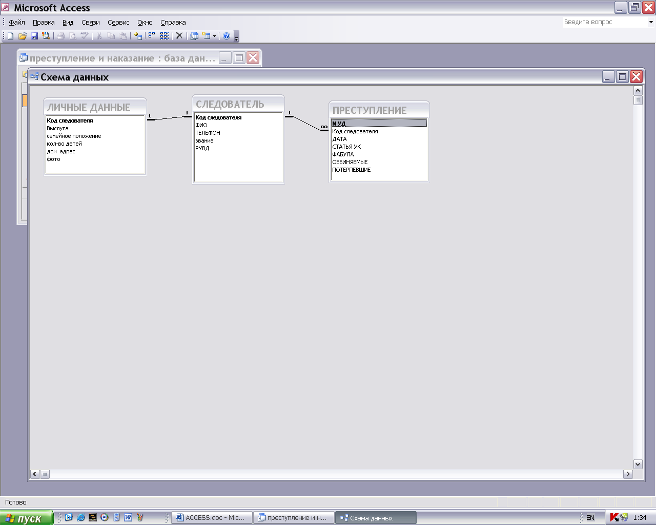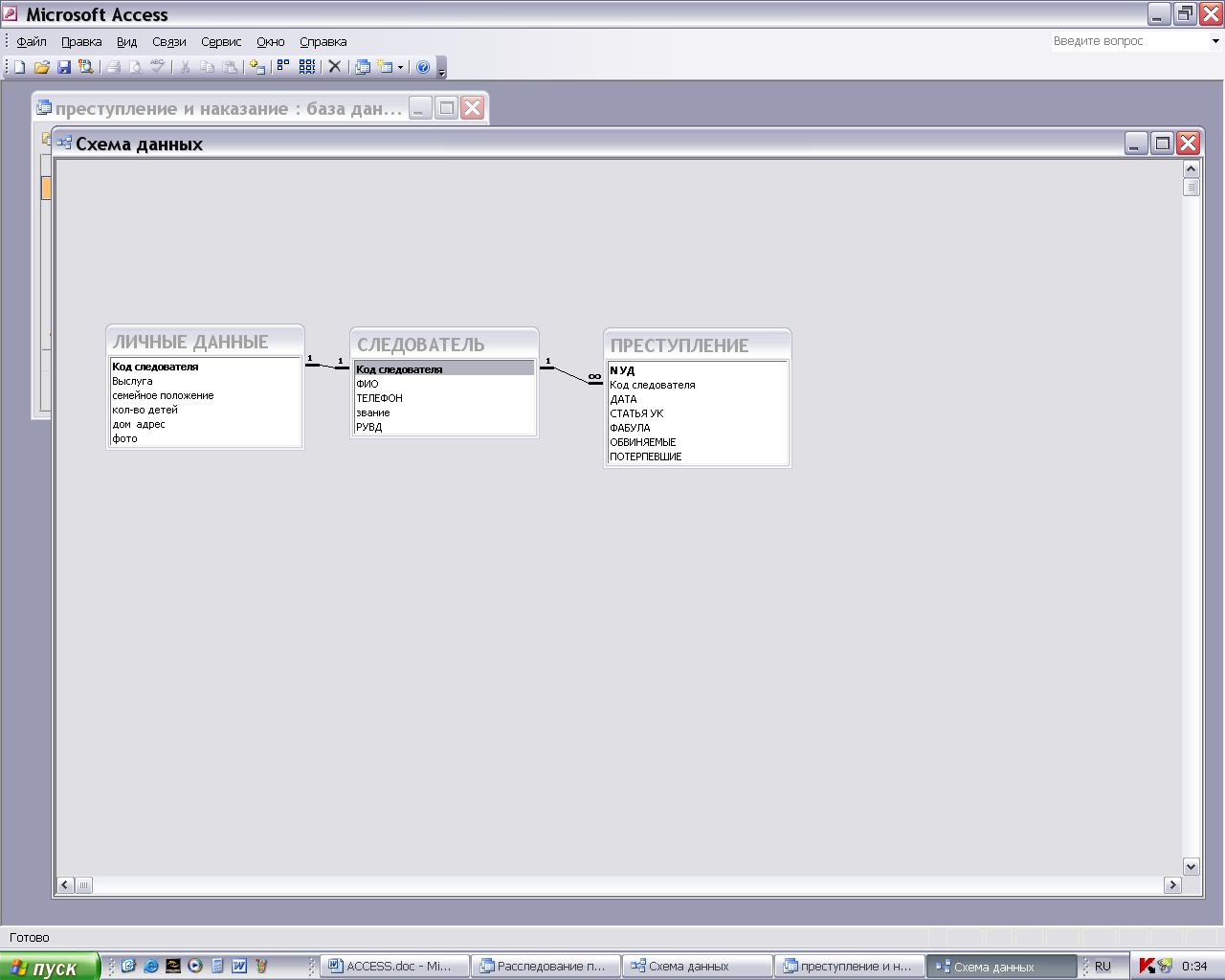 Рис. 5 Схема данных. 18. Закройте схему данных и Access.