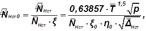 Мощность силовой установки (мощность двигателя) для каждого режима рассчитывают через удельную мощность , потребную для привода несущего винта на соответствующем режиме полета. При этом удельную мощность приводят к мощности на высоте = 0 () и при = 0 () с учетом степени дросселирования двигателей в зависимости от режима и коэффициента использования мощности :