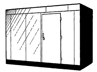 Холодильні камери – це збірно-розбірні конструкції, що складаються з кутових, бічних, стельових і дверних щитів, а також щитів підлоги. Щити з’єднуються між собою болтами, що угвинчують у спеціальні гайки, які знаходяться на рамках щитів. Стики ущільнені гумовими прокладками, прикріпленими до торців щитів. Щити являють собою конструкцію, облицьовану зовні пофарбованими стале