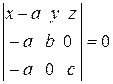 Если плоскость не проходит через начало координат и пересекает все оси декартовой системы координат соответственно в точках , то ее уравнение на основании предыдущего параграфа можно записать в виде