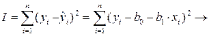 где Построение уравнения регрессии начинается с построения корреляционного поля, представляющего собой графическую зависимость в виде точек случайной величины (Y, Х) на плоскости y 0 x. По расположению эмпирических точек делается вывод о наличии линейной корреляционной зависимости между переменными Y и Х. Дальнейшее построение уравнения регрессии сводится к оценке ее параметров, используя метод наименьших квадратов (МНК). В этом случае неизвестные параметры b 0 и b 1 выбираются так, чтобы сумма квадратов отклонений эмпирических значений yi от значений