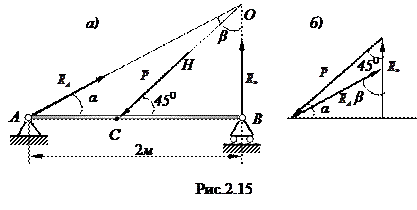 Задача 2.2 Балка АВ длиной 2м (рис. 2.15, а) опирается на неподвижный А и подвижный В шарниры и нагружена силой