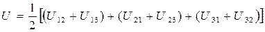 Каждая сумма в круглых скобках представляет собой потенциальную энергию Ui. взаимодействия i -й частицы с остальными двумя. Поэтому последнее выражение можно переписать так: