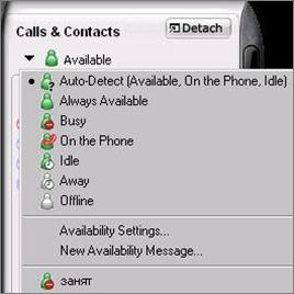 Auto-Detect – автоопределение состояния софтфона Always Avalable – ДОСТУПЕН всегда (не занято) Busy – занято On the Phone -разговариваю по телефону Idle – не работаю Away- временно отошел Offline – не зарегистрирован на коллцентре (например ошибка)
