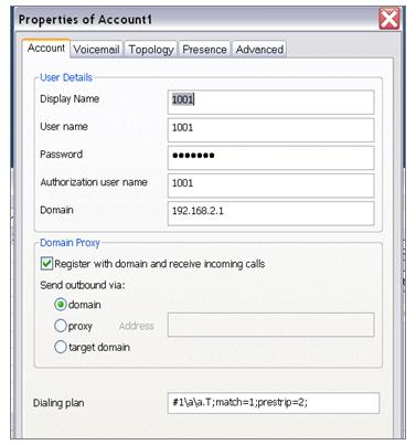 В поле Display Name укажите Ваше имя (будет отображаться на дисплее телефона). В поле User name укажите имя пользователя, соответствующее вашей учетной записи в Asterisk. В поле Password введите пароль, соответствующий вашей учетной записи в Asterisk. В поле Domain указать IP-адрес Asterisk. Нажмите «ОК».