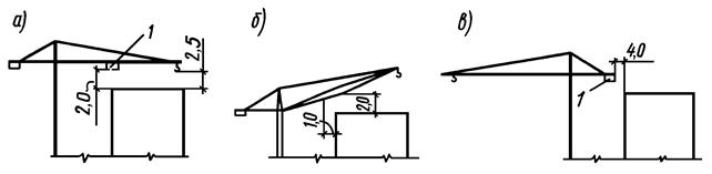 L – вылет стрелы, требуемый для установки элемента. Технические характеристики монтажных кранов приведены в приложении (см таблицы П.1, П.2, П.3). После подбора монтажного механизма необходимо осуществить поперечную и продольную привязку каждого крана (рис. 3.2 и 3.3). Поперечная привязка – это размещение крана (кранов) с соблюдением безопасного расстояния между зданием и механизмом.