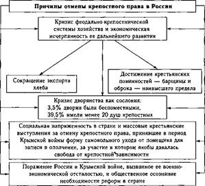 ностей, антиправительственные же выступления были крайне неактивны. В соответствии с этой концепцией стране не грозили ни экономическая катастрофа, ни социальные потрясения. Однако, сохранив крепостное право, она могла потерять статус великой державы, что наглядно показало поражение в Крымской войне. Таким образом, по мнению сторонников этой точки зрения, крестьянская реформа была обусловлена внешнеполитическими факторами, т.е. необходимостью сохранить статус России как могущественного государства. В 1857 г. царское правительство приступило к разработке крестьянской реформы. Император в своих действиях опирался на бюрократию, подвластный и послушный ему государственный аппарат. В период царствования Николая I численность бюрократии значительно возросла. Ее роль в государстве усилилась; поместное дворянство в это время, утратив былую силу, закладывало и перезакладывало имения. Окрепли и утвердились военно-политические функции бюрократии. Однако в 1830—1850-е гг. в ее среде стал складываться определенный слой прогрессивных, по государственному мыслящих людей. Их соединяло единство взглядов на программу предстоящих преобразований. Ученые назвали эту группу либеральной бюрократией. Покровителем либеральных бюрократов был брат царя великий князь Константин Николаевич, а виднейшими их представителями — чиновник министерства внутренних дел Н.А. Милютин, его брат генерал Д.А. Милютин, Я.И. Ростовцев, В.И. Даль, Я.И. Соловьев и др. Либеральные бюрократы отстаивали интересы не какого-либо из сословий, а государственной власти как самостоятельной, самодовлеющей силы. По их мнению, для укрепления позиций необходимо было освободить крестьян, создать крепкое крестьянское хозяйство, предоставить определенную свободу общественным силам. Либералы также выступали за демократизацию государства при сохранении монархии. В январе 1857 г. был создан традиционный для России Секретный комитет по крестьянскому делу, начавший рассматривать старые, оставшиеся от предыдущих царствований проекты и варианты решения крестьянского вопроса. Через год Секретный комитет был преобразован в Главный комитет по крестьянскому делу. Самая значительная новация была в том, что вводилось гласное обсуждение и рассмотрение вопросов освобождения крестьянства. Одновременно были созданы аналогичные комитеты в 46 губерниях. Они также начали составлять свои проекты крестьянской реформы, однако их права и возможности были существенно ограничены специальным правительственным циркуляром. На практике деятельность этих комитетов сводилась в основном к сбору статистических данных о состоянии помещичьих имений по спущен- иым сверху правительством вопросам, а также к сочинению местных вариантов улучшения быта крестьян. Большинство помещиков предлагали освободить крестьян без земли или с маленькими земельными наделами. Эта точка зрения была особенно популярна в черноземных губерниях, где земля имела большую ценность. Либеральные же помещики предлагали освободить крестьян с землей за выкуп. Такое решение устраивало помещиков нечерноземной полосы, где земля большой ценности не представляла. Первоначально Александр II разделял позицию большинства помещиков, однако затем пришел к выводу о необходимости освободить крестьян с землей. В результате бурных об