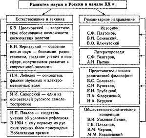 Важную роль играли частные учебные заведения (Психоневрологический институт В.М. Бехтерева, Вольная высшая школа П.Ф. Лесгафта и др.). В них преподавали крупные ученые (И.П. Павлов, М.М. Ковалевский, В.И. Семевский и др.). Заметно расширялось женское высшее образование. В 1900 г. в Москве вновь были открыты Высшие женские курсы В.И. Герье, закрытые в 1888 г. Аналогичные курсы создавались и в ряде губернских городов (Саратове, Одессе, Ростове, Харькове и др.). Все они финансировались за счет негосударственных средств. В 1911 г. был принят закон, уравнивающий права женщин и мужчин в получении высшего образования. Печать и книжное дело. В области книгоиздания и выпуска периодики Россия добилась больших успехов. В первое десятилетие XX в. по количеству издаваемых книг Россия вышла на третье место в мире после Германии и Японии. Выходило много периодических изданий. Если в начале века выпускалось 125 легальных газет, то в 1912 г. их стало уже больше тысячи. Наиболее крупными книгоиздателями того времени были: • А.С. Суворин (1834—1912), который издавал одну из самых влиятельных и многотиражных газет «Новое время». Наряду с дорогими подарочными изданиями и справочниками («Вся Россия», «Вся Москва», «Весь Петербург») он выпускал литературу по общедоступным ценам в серии «Дешевая библиотека»; • И.Д. Сытин (1851 —1934), начинавший свою трудовую деятельность учеником в книжной лавке в Москве. Затем он открыл собственное дело по производству и продаже лубочных картинок, имевших огромный спрос. К началу XX в. И.Д. Сытин сосредоточил в своих руках издание и продажу просветительской и художественной литературы для простого народа через особую систему распространения, главными в которой были книгоноши (их называли офени); • А.Ф. Маркс (1838—1904), издававший один из самых популярных и известных журналов «Нива», к которому в качестве приложений выходили собрания сочинений отечественных и зарубежных писателей. Наука. Уровень развития отечественной науки напрямую зависел от социально-экономического положения России. Российские ученые внесли свой весомый вклад в мировую науку (схема 197). Создателем русской научной школы физиков был П.Н. Лебедев (1866—1912). Он впервые экспериментальным путем получил и исследовал природу и распространение миллиметровых электромагнитных волн, открыл и измерил давление света на твердые тела и газы. Его ра-
