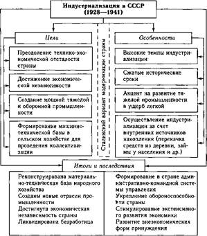 Традиционно считается, что курс на индустриализацию был определен на XIV съезде ВКП(б) в декабре 1925 г., где была поставлена задача превращения СССР из страны, ввозящей машины и оборудование, в страну, производящую их. Предполагалось, что такое решение позволит достичь экономической независимости от капиталистических стран, укрепить обороноспособность. К началу 1928 г. было разработано два варианта плановых заданий — отправной и оптимальный — первой пятилетки. Оптимальный вариант по плановым заданиям на 20% превышал отправной. И.В. Сталин и его окружение, разгромившие к тому времени почти всю оппозицию, сделали ставку на более высокие показатели оптималь- ного варианта плана, который и был утвержден XVI партийной конференцией в апреле 1929 г. и V Всесоюзным съездом Советов в мае 1929 г. Первая пятилетка (1928—1932). Она начала осуществляться уже с 1 октября 1928 г. Главными особенностями индустриализации в этот период были высокие темпы, сжатые сроки, акцент на строительство предприятий тяжелой промышленности, использование внутренних источников накопления (перекачка средств из деревни, займы у населения и др.). За время пятилетки было построено 1500 промышленных объектов (Днепрогэс, Магнитогорский и Кузнецкий металлургические комбинаты, Сталинградский и Харьковский тракторные заводы, автомобильные заводы в Москве и Нижнем Новгороде и др.). Этому способствовал небывалый искренний энтузиазм людей, которые самоотверженно трудились на стройках первой пятилетки, несмотря на утверждение командно-административной системы управления экономикой и становление тоталитарно-репрессивного режима в стране. В январе 1933 г. И.В. Сталин торжественно объявил о досрочном выполнении первого пятилетнего плана за четыре года и три месяца. Это на долгие годы стало аксиомой. И только в конце 1980-х гг. отечественные экономисты (прежде всего О.Р. Лацис) сумели доказать, что на самом деле большинство заданий не были выполнены в связи с их нереальностью и завышенными темпами роста. Вторая пятилетка (1933—1937). В эти годы по-прежнему сохранялась тенденция приоритетного развития тяжелой промышленности. Всего было введено в действие 4500 крупных народнохозяйственных предприятий. Вступили в строй Урало-Кузнецкий металлургический комбинат, Уральский и Краматорский заводы тяжелого машиностроения. В Москве в 1935 г. открылась первая линия метрополитена. Началось стахановское движение, направленное на повышение производительности труда. Шахтер из Донбасса Алексей Стаханов в августе 1935 г. во время одной из смен добыл 102 т угля, превысив норму в 14,5 раза. Этот рекорд был установлен в результате правильной организации труда (ему помогали в забое подсобные рабочие, ставившие крепежный лес) и максимального использования отбойного молотка. В пропагандистских целях при поддержке И.В. Сталина и Г. Орджоникидзе рекорд А. Стаханова получил всесоюзную известность, и его последователи вскоре появились по всей стране. Было объявлено, что плановые задания второй пятилетки также выполнены за четыре года и три месяца, хотя этЬ и не соответствовало действительности, так как по ряду показателей (производству металла и товаров народного потребления, добыче угля и др.) достичь запланированных рубежей не удалось. Третья пятилетка (1938—1942) осталась незавершенной из-за нападения Германии на СССР