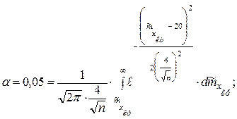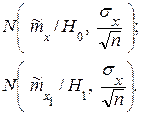 Выбираем статистику – нормальный закон распределения, так как математическое ожидание распределено по нормальному закону. В качестве статистического критерия выбираем оценку математического ожидания.