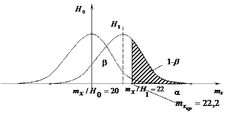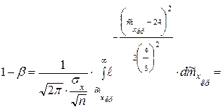 Следовательно, mx1 не принадлежит критической области, поэтому гипотезу Н0 отвергнуть нельзя. Так как mx1 близко расположена к критической области, то произведем оценку риска заказчика 1 – b. Оценим риск заказчика: вычислим площадь 1 – b конкурирующей альтернативы
