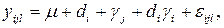 Будем полагать, что предпосылки проведения ДА выполнены. В рассматриваемых условиях любое наблюдение из таблицы 4.4 может быть представлено виде следующей модели: