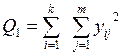 - сумму квадратов итогов по строкам, деленную на число наблюдений в строке: