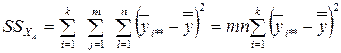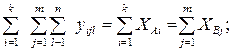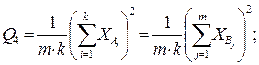 В таблице 4.5 обозначено: i= 1 ,k – число уровней фактора ХА (число столбцов); J= 1 ,m – число уровней фактора ХВ (число строк);